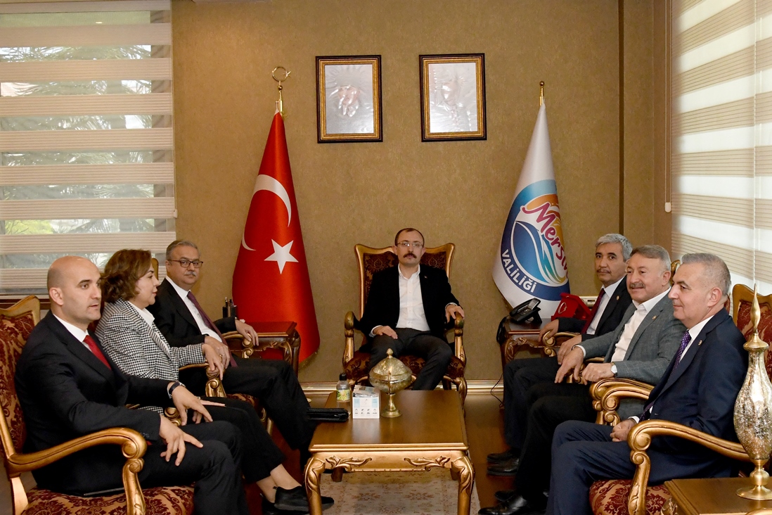 Temas ve incelemelerde bulunmak üzere Mersin’e gelen Ticaret Bakanı Dr. Mehmet Muş, beraberindeki heyet ile birlikte Vali Ali İhsan Su’yu makamında ziyaret etti.