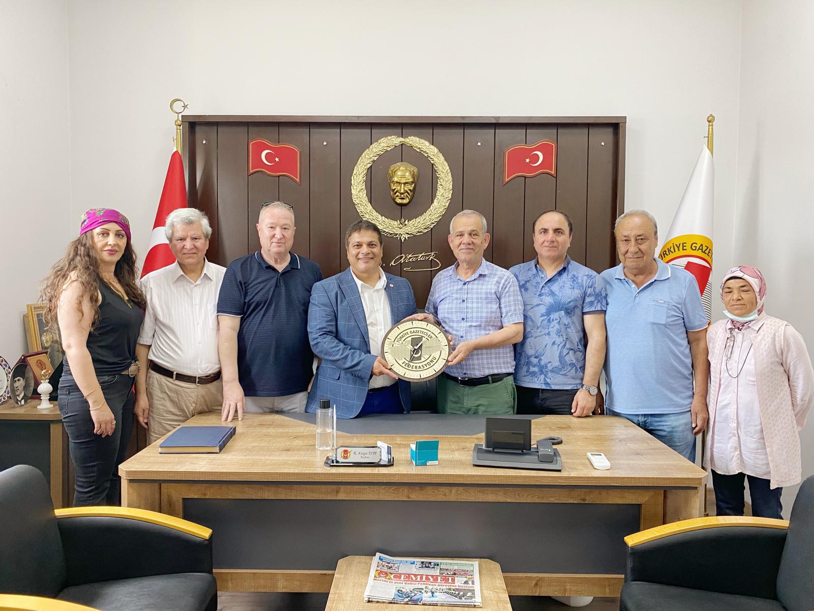 Türkiye Gazeteciler Fedarasyonu (TGF) Genel Başkanı Yılmaz Karaca , Genel Başkan Yardımcıları Levent Altun ve Necmi Işıksal ile birlikte teşkilat ziyaretleri kapsamında Mersin Gazeteciler Cemiyeti'ni ziyaret etti.